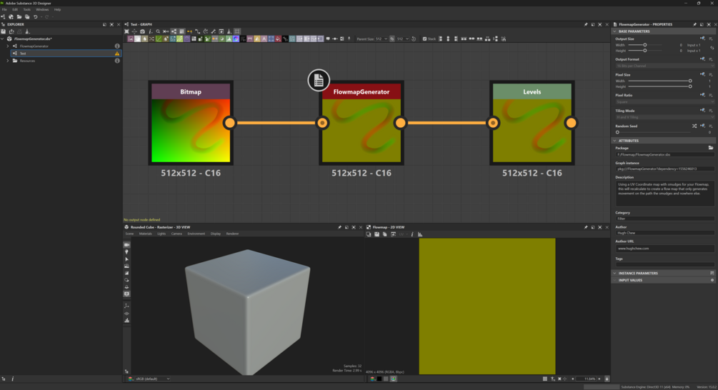If you ever need a simple way to paint custom flowmaps directly inside of Substance Painter ( Version 11.0.3) and Substance Designer (Version 15.0.2) Look no further than with my Smart Material that allows you to paint directly and calculate the necessary info to be used within Game Engine shaders such as in Unreal Engine. The Smart material generates a standard Color Map (Albedo) for usage. For the Substance designer SBSAR, all it requires is a smudged UV Coordinate that then converts and calculates a proper flowmap.